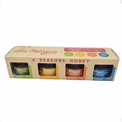 Découvrez la richesse des terroirs crétois avec ce coffret de miels artisanaux "4 Saisons".