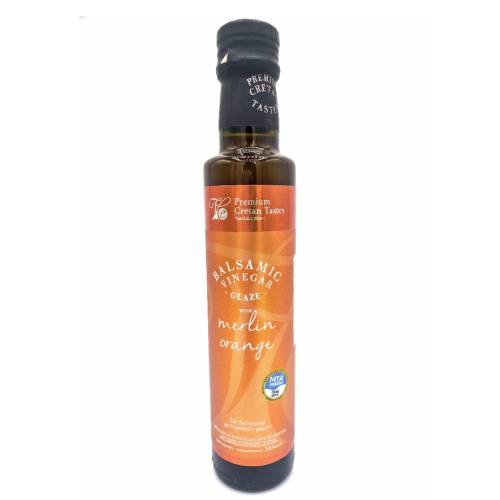 Le vinaigre balsamique à l'orange,le peps des agrumes crétois dans un nectar balsamique. La Crème de Balsamique à l'Orange de Vassilakis Estate marie la profondeur d'un vinaigre balsamique de qualité à la fraîcheur éclatante des oranges gorgées de soleil de Crète. Onctueuse et délicatement fruitée, cette crème est l'ingrédient secret pour apporter une note acidulée et parfumée à vos créations culinaires, des viandes blanches aux desserts chocolatés.
