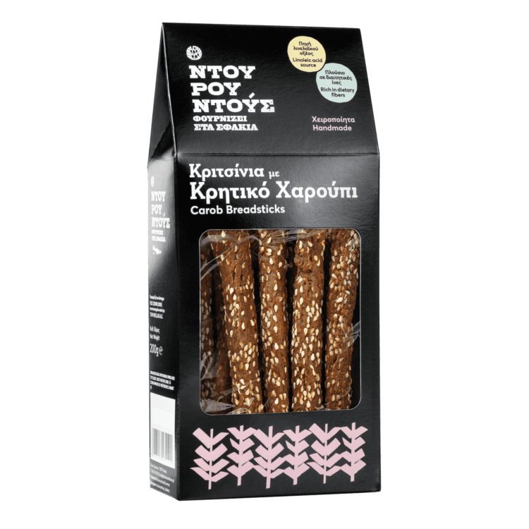 Fabriqué à partir de farine de caroube crétoise, de vin blanc, de cognac, de sésame et d’huile d’olive